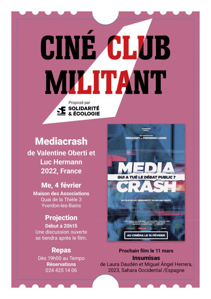 ma 20.01, 19h, Maison des Associations (Le Tempo)